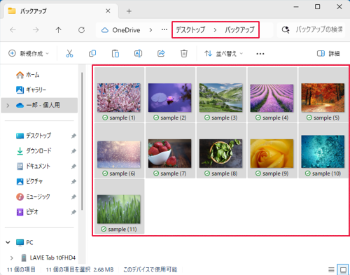 LAVIE Tab T10(2025年04月発表機種)でファイル(画像・動画)をバックアップするには、以下の操作手順を行ってください。