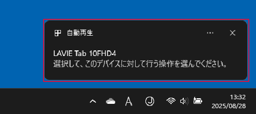 パソコンに「選択して、このデバイスに対して行う操作を選んでください。」という通知が表示されたら、画面が消えるまで待ちます。