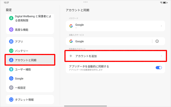 お持ちのアカウントを再度タブレットへ登録したい場合は、ここで案内する手順を行ってください。