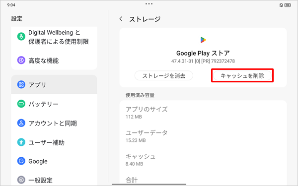 Playストアのキャッシュを削除するには、以下の操作手順を行ってください。