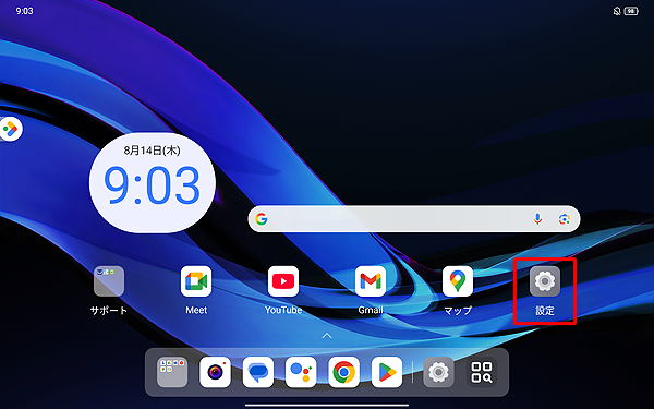ホーム画面を開き、「設定」をタップします。