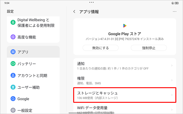 Playストアのキャッシュを削除するには、以下の操作手順を行ってください。