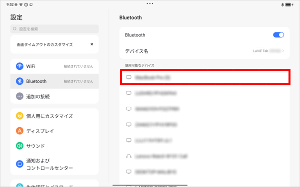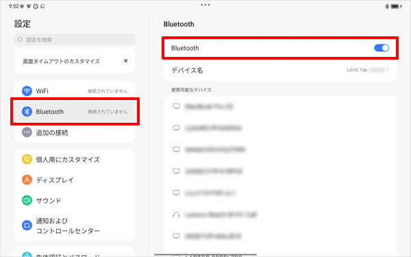 LAVIE Tab T10(2025年04月発表機種)でBluetooth機器を接続するには、以下の操作手順を行ってください。