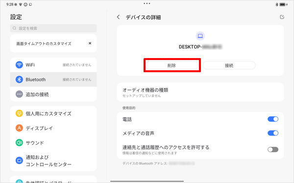 「デバイスの詳細」が表示されたら、「削除」をタップします。