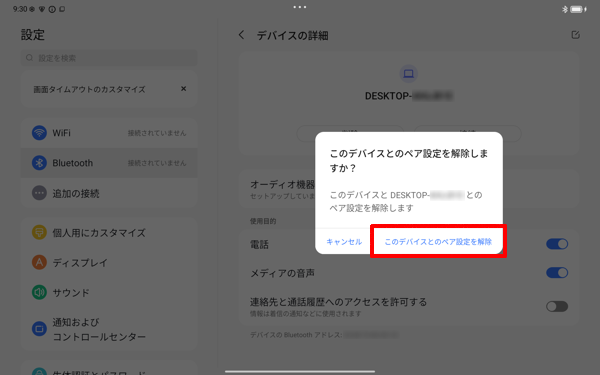「このデバイスとのペア設定を解除」をタップします。