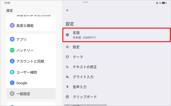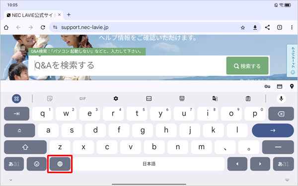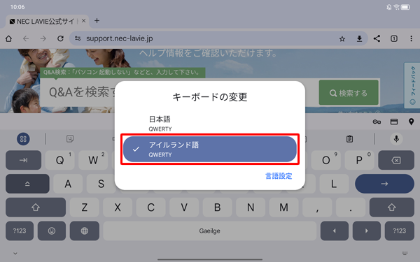 Q&A検索 製品 LAVIE Android LAVIE Tab T LAVIE Tab T10(2025年04月発表機種)で文字入力に使用する言語を設定する方法