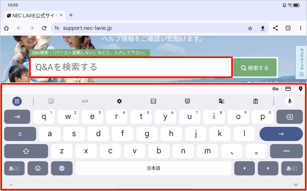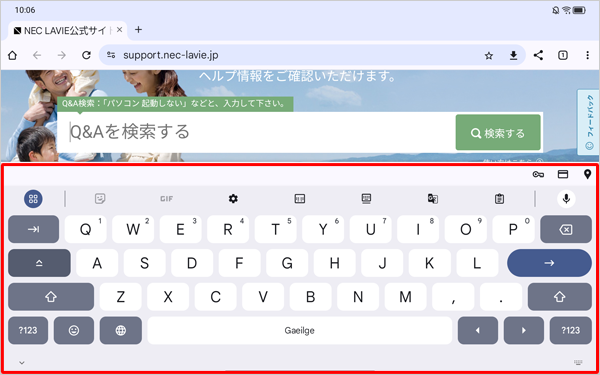 Q&A LAVIE Tab T10(2025年04月発表機種)で文字入力に使用する言語を設定する方法LAVIE Tab T10(2025年04月発表機種)では、画面キーボードを利用して文字を入力します。
