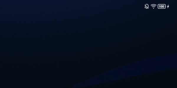 画面右上のステータスエリアから、バッテリーアイコンでバッテリー残量を確認できます。