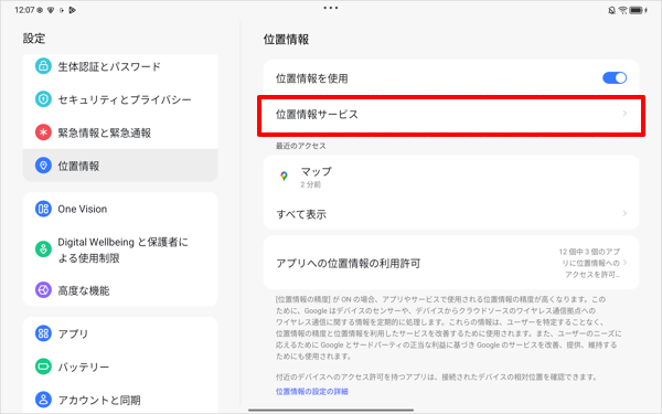 Q&A検索 製品 LAVIE Android LAVIE Tab T LAVIE Tab T10(2025年04月発表機種)で位置情報サービス機能を利用して現在地を表示する方法