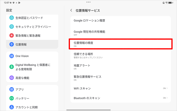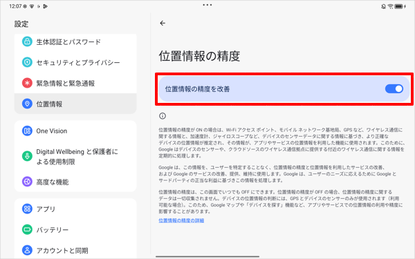 「位置情報の精度を改善」を「ON」に設定した場合