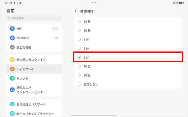 表示された「画面消灯」の一覧から目的の時間をタップします。