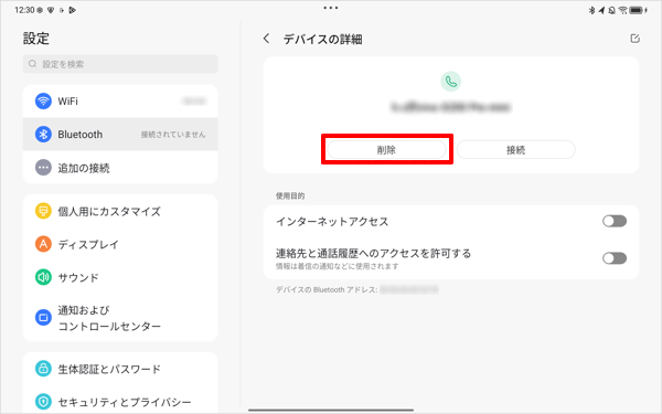 「デバイスの詳細」が表示されたら、「削除」をタップします。