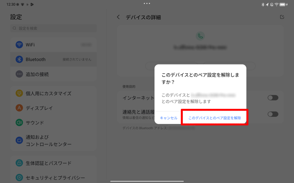「このデバイスとのペア設定を解除」をタップします。