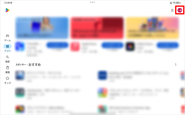 「Playストア」が起動したら、画面右上の「」をタップします。
