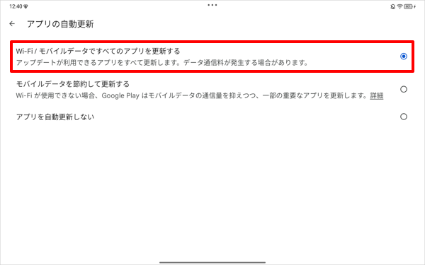 「Wi-Fi/モバイルデータですべてのアプリを更新する」をタップします。