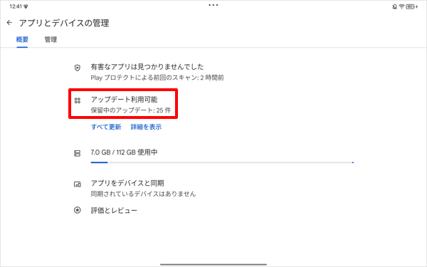 ※ 更新可能なアプリは、「アプリ」一覧に表示されます。