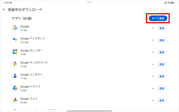 アップデートするアプリが複数あり、一度にすべてのアプリをアップデートしたい場合は「すべて更新」をタップします。