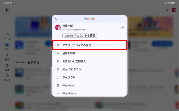 ※「アプリとデバイスの管理」が表示されない場合は、「マイアプリ&ゲーム」をタップします。