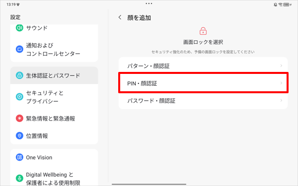 Q&A検索 製品 LAVIE Android LAVIE Tab T LAVIE Tab T10(2025年04月発表機種)の顔認証搭載機種で画面ロックを設定する方法