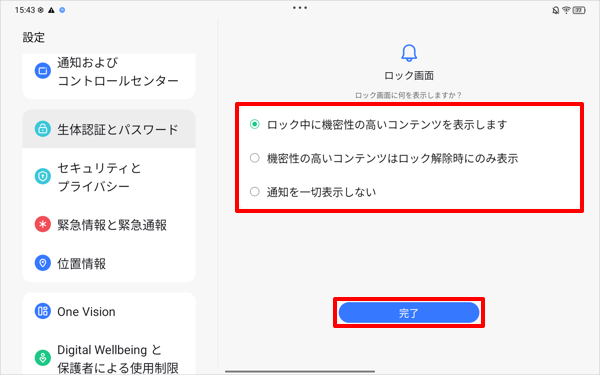 任意の通知の表示方法をタップして、「完了」をタップします。