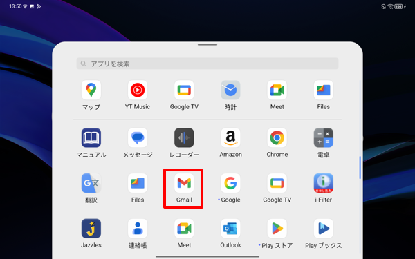 LAVIE Tab T10(2025年04月発表機種)でGmailアプリを設定するには、以下の操作手順を行ってください。