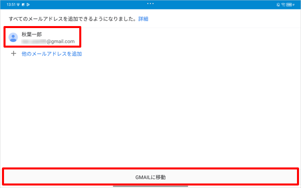 画面に表示されているGmailを使用する場合は、「GMAILに移動」をタップします。