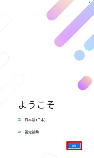「ようこそ」が表示されたら、「開始」をタップします。