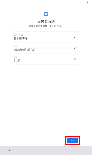 日時が正しいことを確認し、「次へ」をタップします。