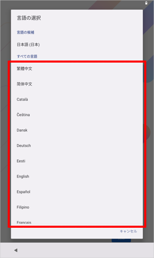 日本語以外の言語を表示したい場合は、「日本語(日本)」をタップして、表示された一覧から任意の言語をタップします。