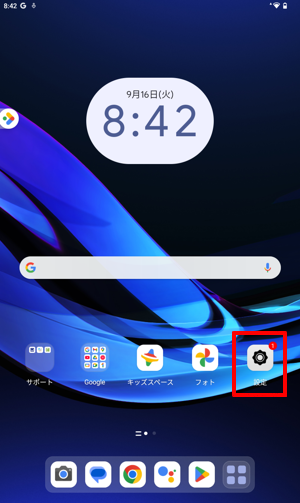ホーム画面を開き、「設定」をタップします。