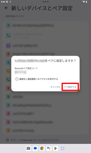 「(新しいデバイス)をペアに設定しますか?」が表示されます。