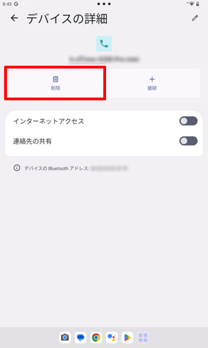 「デバイスの詳細」が表示されたら、「削除」をタップします。