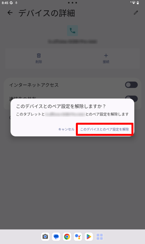 「このデバイスとのペア設定を解除」をタップします。