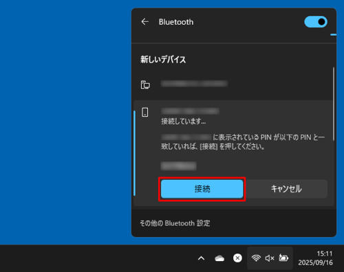 Windows 11のパソコンでのペア設定画面(一例)