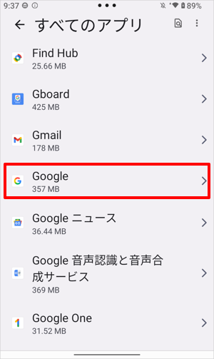 4. アプリの一覧から正常に動作しないアプリをタップします。