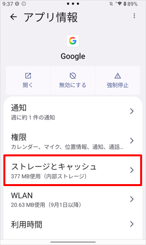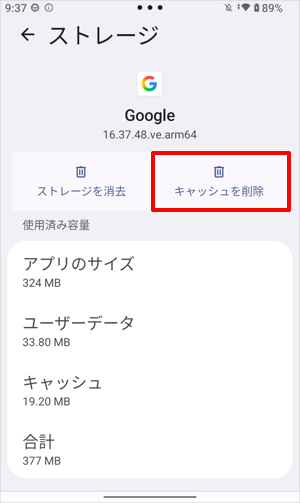 キャッシュデータを削除することで、アプリが正常に動作するか確認します。