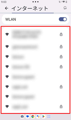 周囲のWLAN環境が検出されるので、接続したいWLANをタップします。