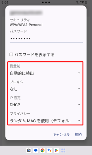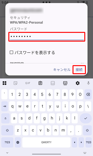 接続画面が表示されたら、「パスワード」を入力し、「接続」をタップします。