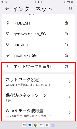 タップすると、接続情報を保存したWLANネットワークの一覧が表示されます。