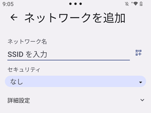 「ネットワークを追加」の右側にある「」(QRコード)をタップすると、「QRコードのスキャン」が表示されます。