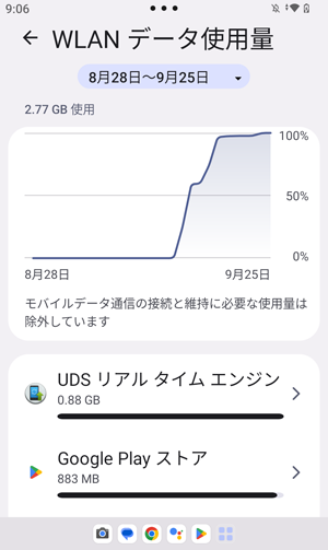 選択した期間の総データ使用量と、その内訳が表示されます。