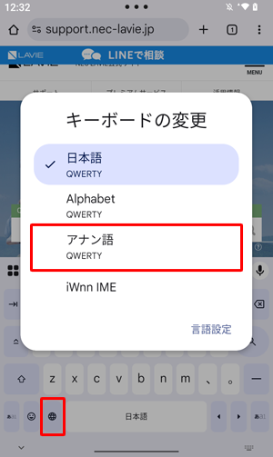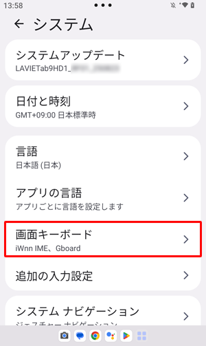 Q&A検索 製品 LAVIE Android LAVIE Tab T LAVIE Tab T9(2023年05月発表機種)で文字入力に使用する言語を設定する方法