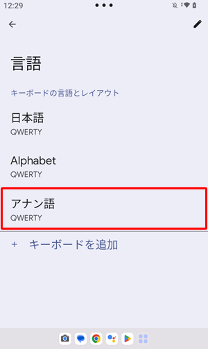 キーボードの入力言語が「アナン語」に切り替わったことを確認してください。