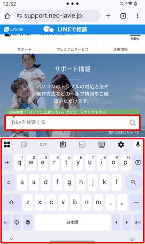 11. ブラウザーを起動し、文字入力箇所をタップして、ソフトウェアキーボードを表示させます。