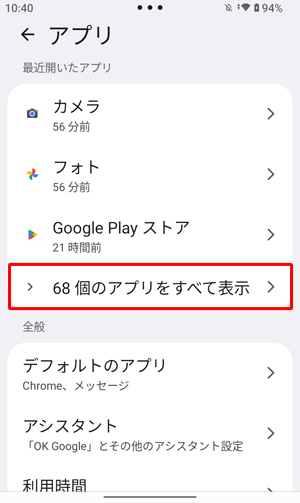 「(アプリ数)個のアプリをすべて表示」をタップします。