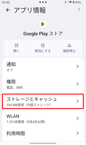 Playストアのキャッシュを削除するには、以下の操作手順を行ってください。