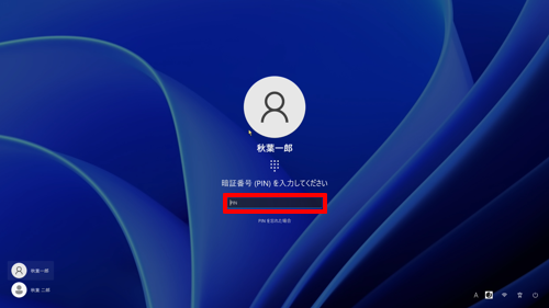アカウント名を確認し、PINを入力したら、「Enter」キーを押します。