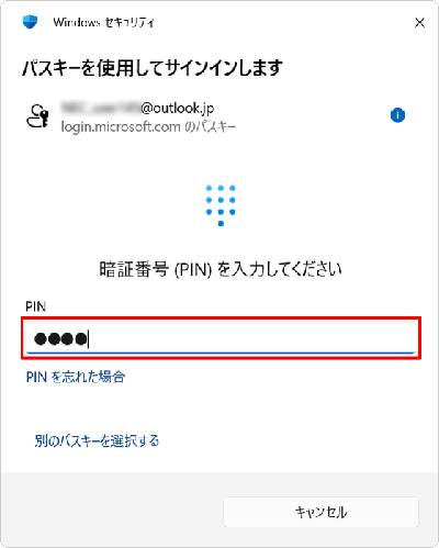 PINボックスに、PINに設定した数字(暗証番号)を入力します。